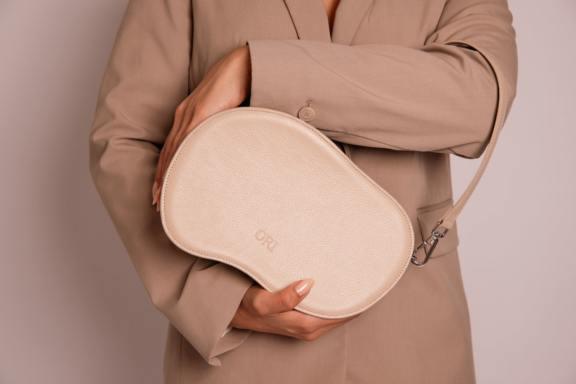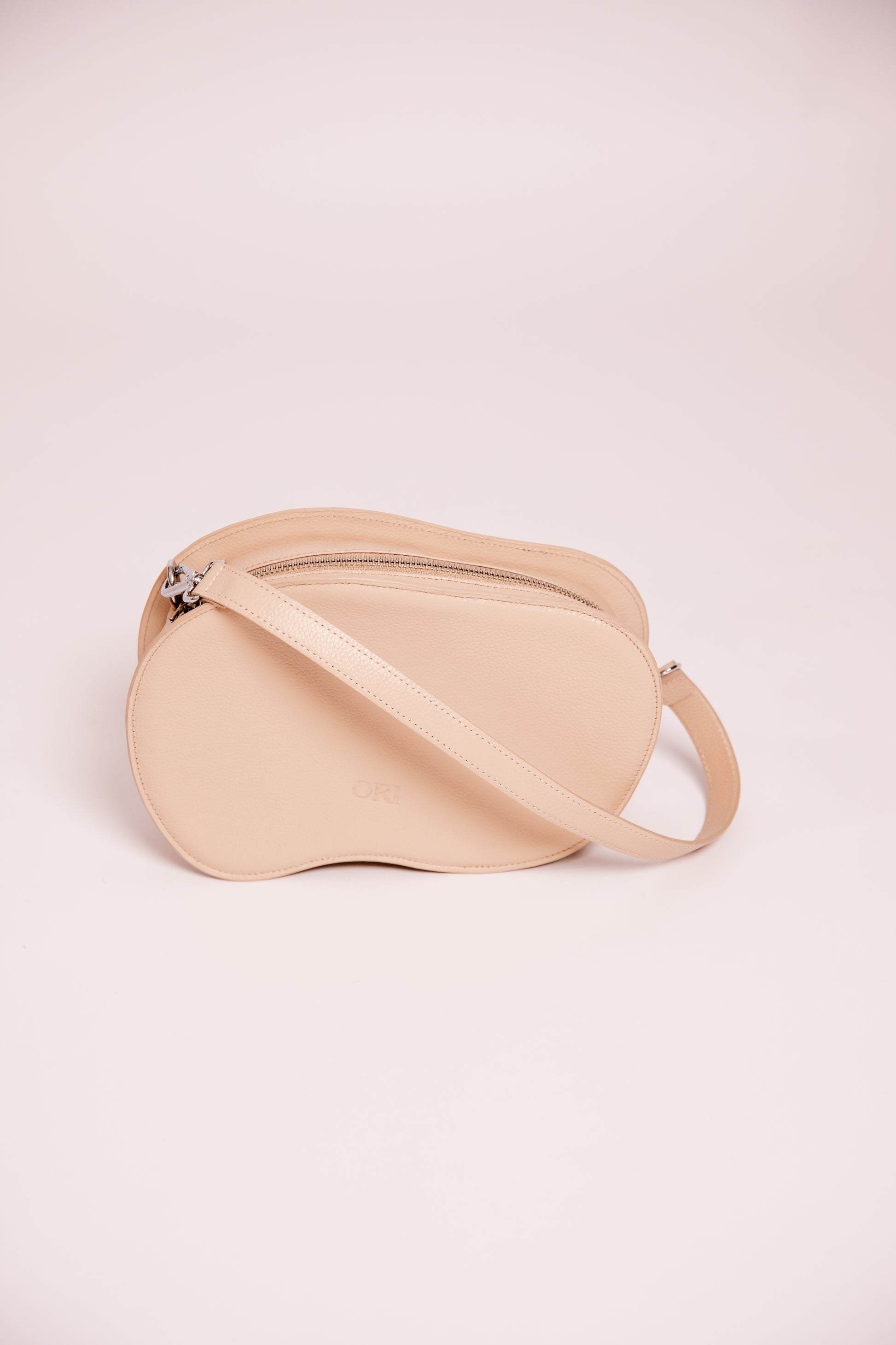 Bolso calma toma la silueta del logo de Ori, una forma orgánica que encarna equilibrio y movimiento pausado. Elaborado en cuero bovino con interior textil, su estructura semirigida mantiene la armonía entre la firmeza y la suavidad. El cierre y herrajes plateados complementan una pieza que refleja la esencia de la marca: hecha con calma y alma.